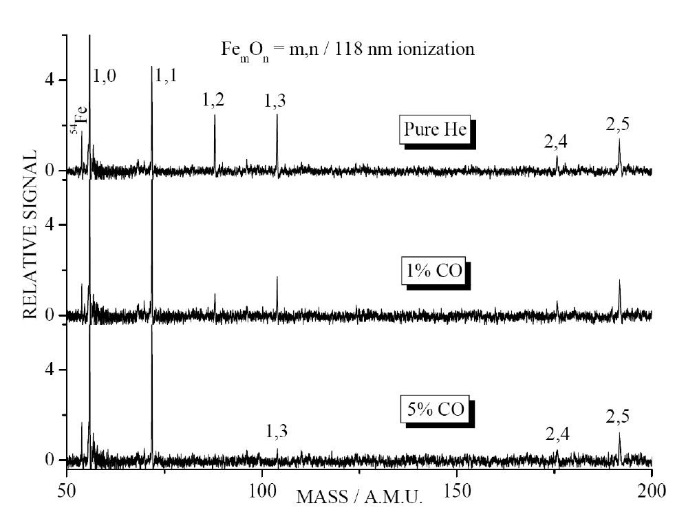 iron oxide clusters with carbon monoxide in flow tube reactor. CO