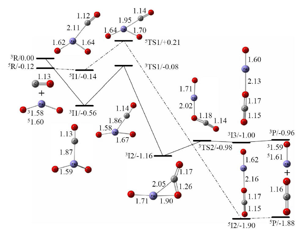 DFT calculated reaction pathways of FeO2