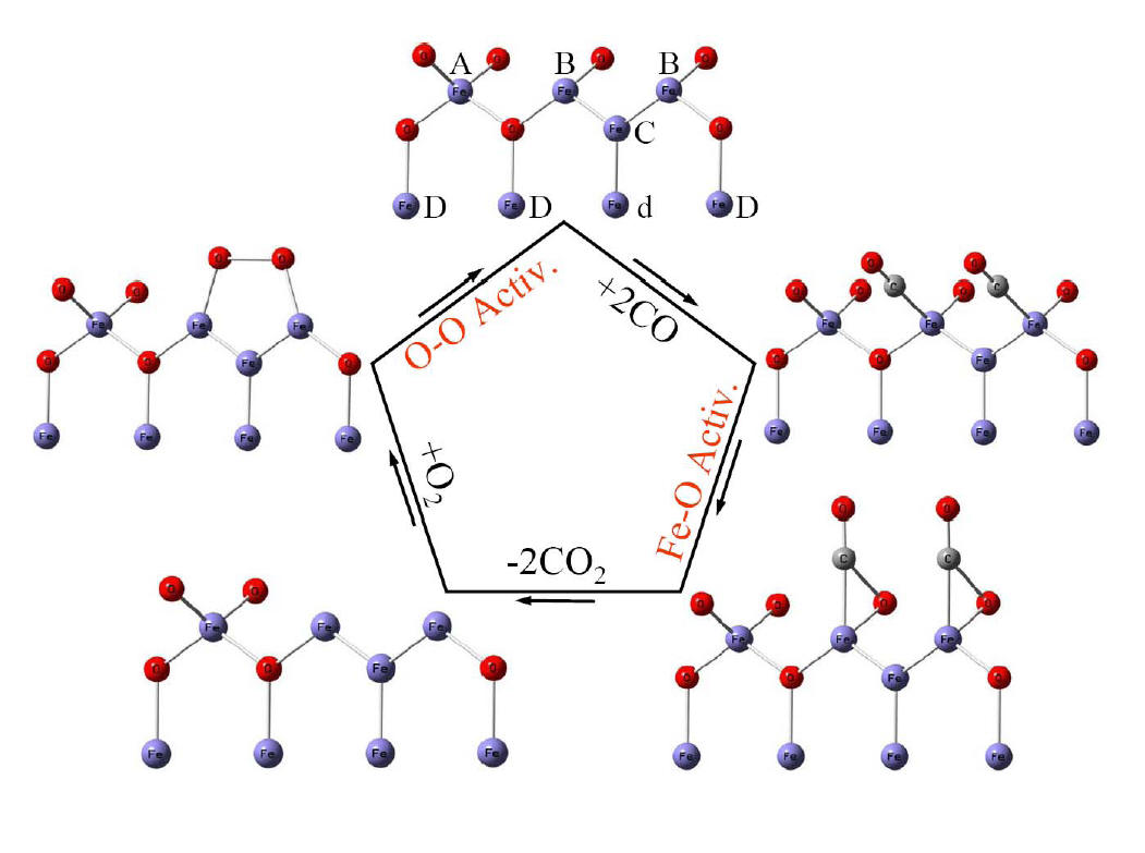 + CO → FeO + CO2. Reaction intermediates (In),