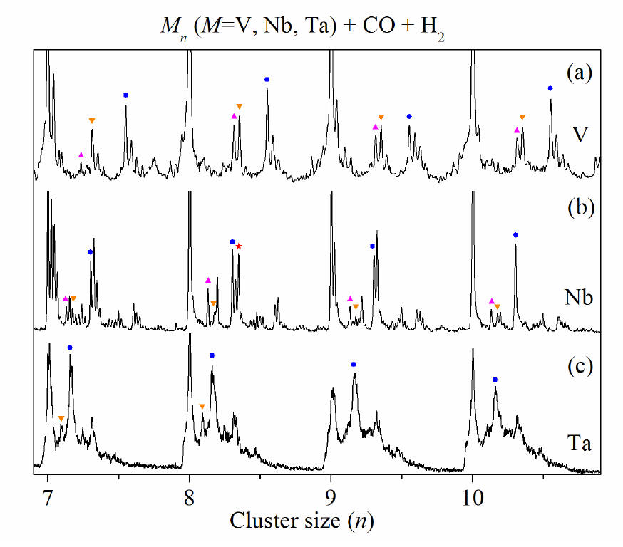 mass spectra (low mass region) for reactions of VmOn