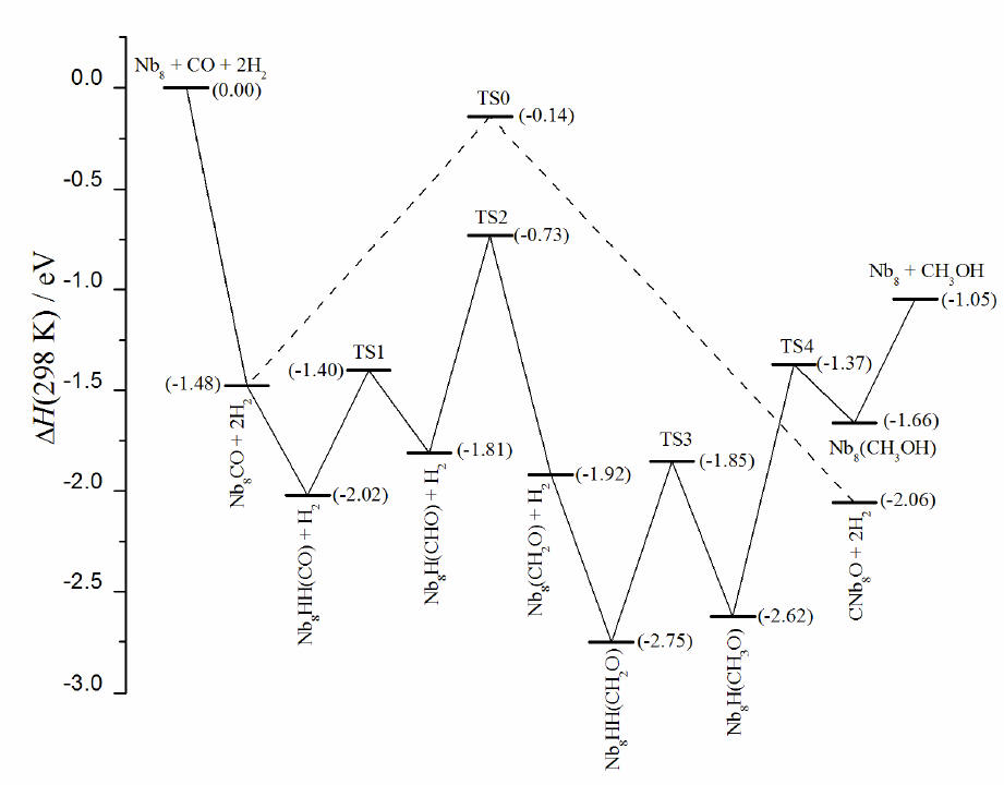 the reaction Nb8 + CO + 2H2 → Nb8 +