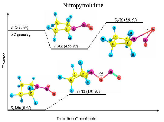nitramine excited electronic state dissociation could be OH, generated along