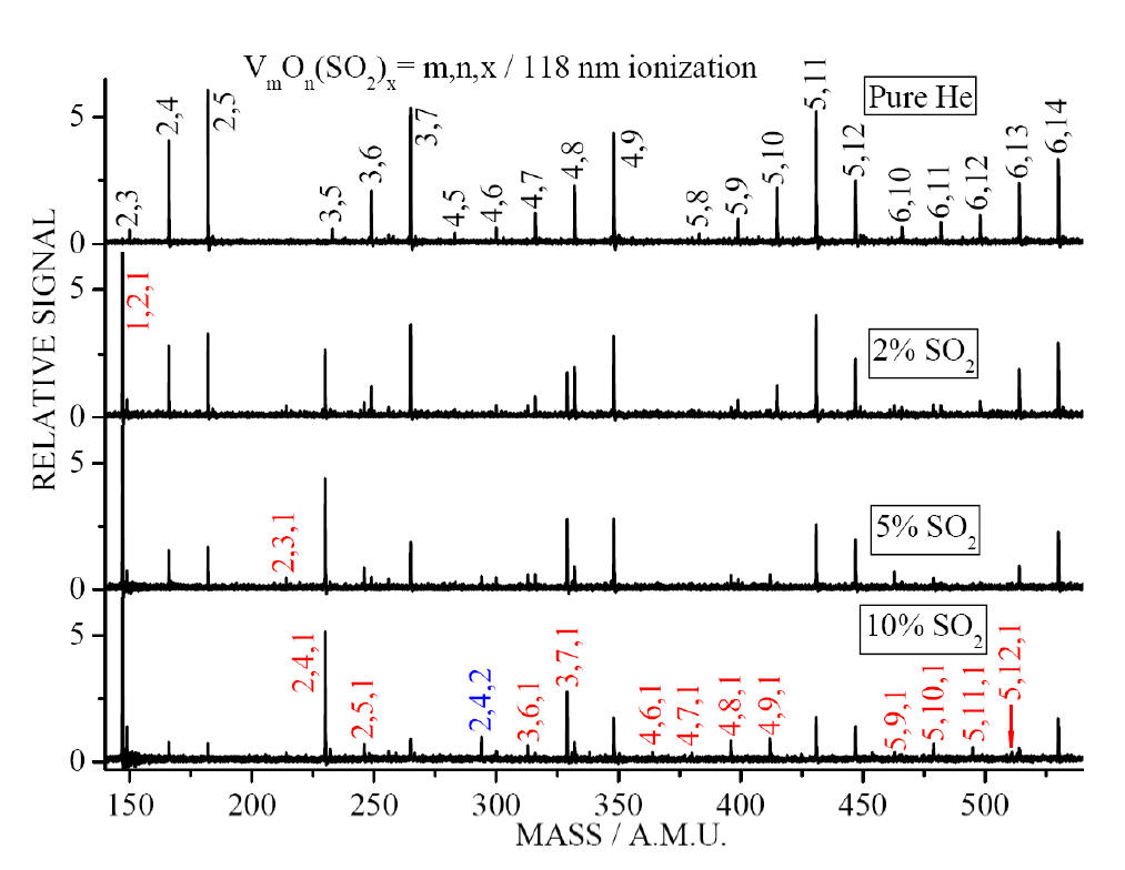with different concentrations of SO2 seeded in He. The